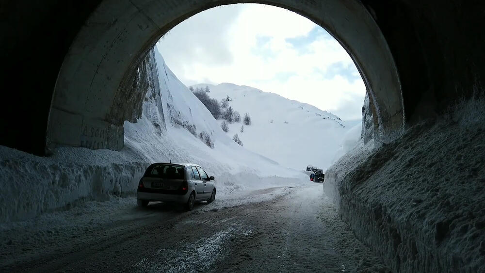В Черногории до 1 апреля этого года зимняя резина является обязательной на дорогах, где это обозначено светофорами, независимо от зимних условий.Посмотрите кадры с дрона с дороги Никшич - Савник: